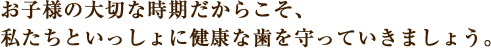 成長過程にある子供の大切な歯を守るには、歯の病気の早期発見・早期治療そして早期予防が大切だと考えます。